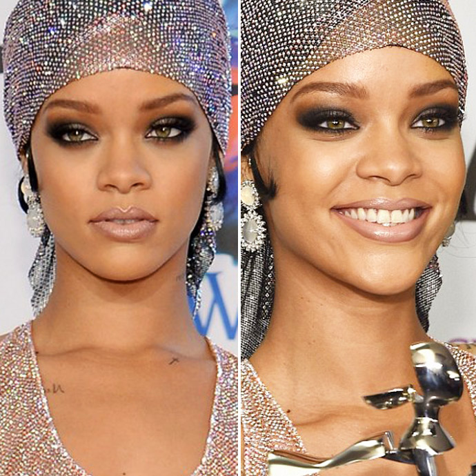 Como sempre digo a maquiagem tem que ser adaptada para a mulher que for ser maquiada, pois todos temos nossas particularidades faciais, algumas com olhos grandes, outras pequenos, algumas tem um côncavo bem marcado de natureza, outras como eu, tem reproduzir um côncavo na hora da make. E eu adaptei a maquiagem da RIHANNA a minha realidade: olhos pequenos, pálpebras inchadas e levemente caídas, e o resultado vocês conferem no vídeo.